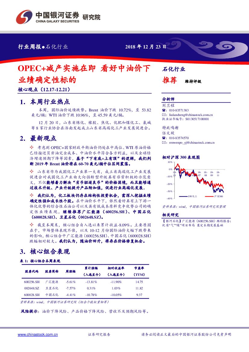 中国银河:化工行业周报:OPEC+减产实施在即 看好中油价下业绩确定性标的.pdf