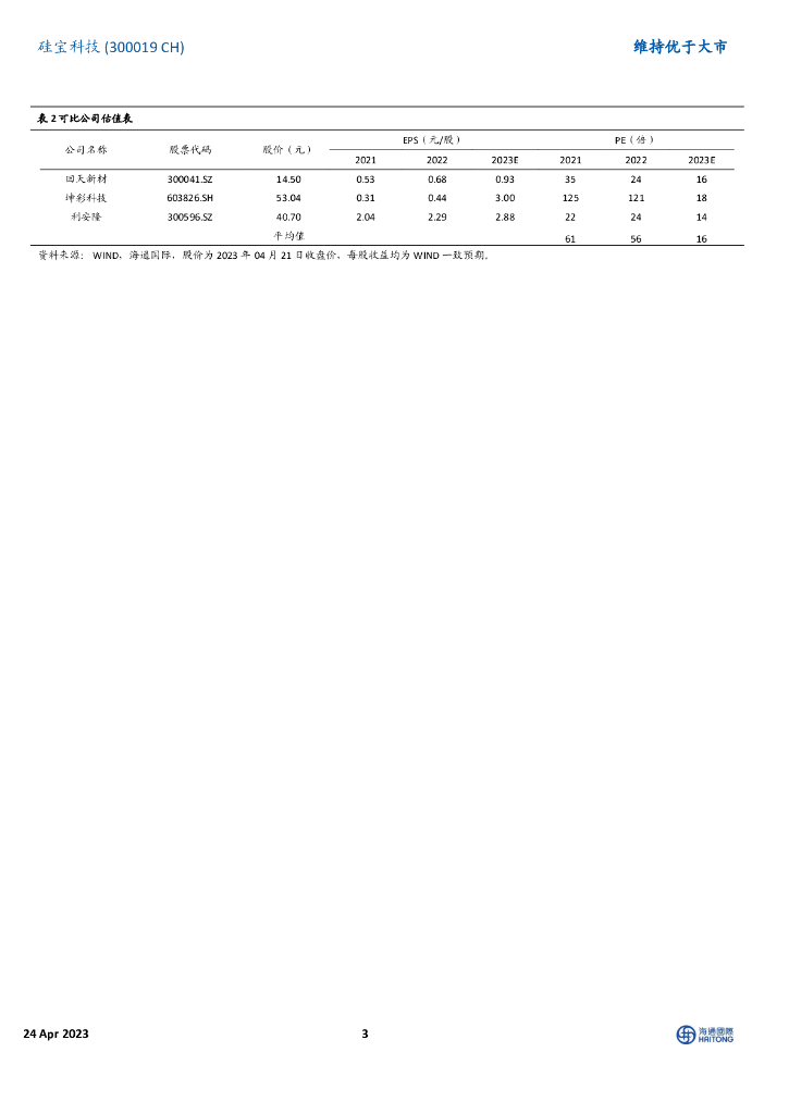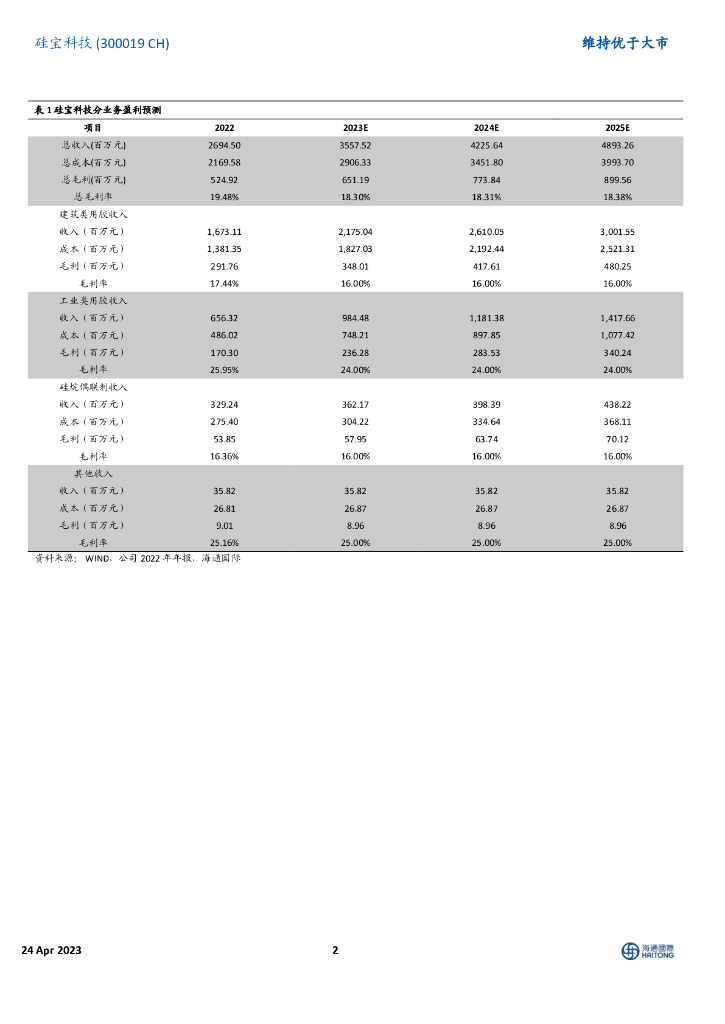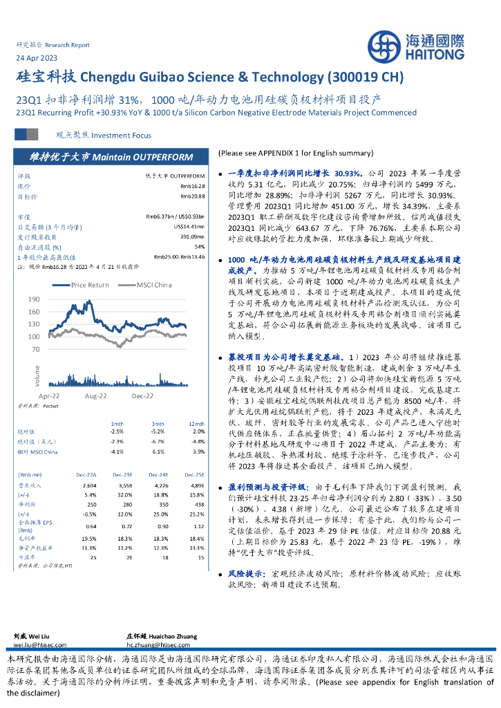 海通国际:硅宝科技(300019)-23Q1扣非净利润增31%,1000吨/年动力电池用硅碳负极材料项目投产.pdf