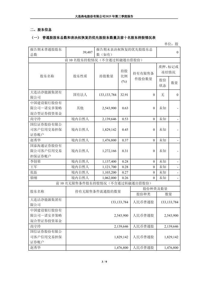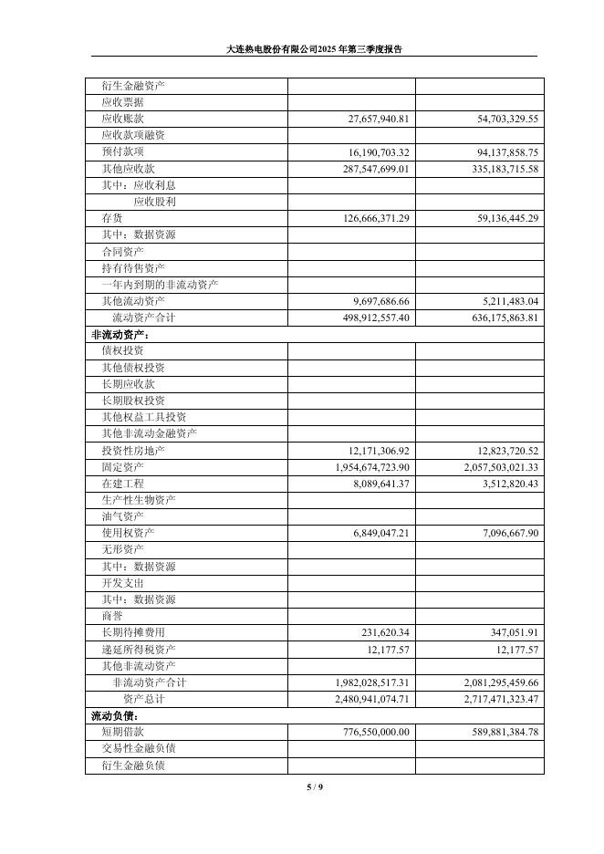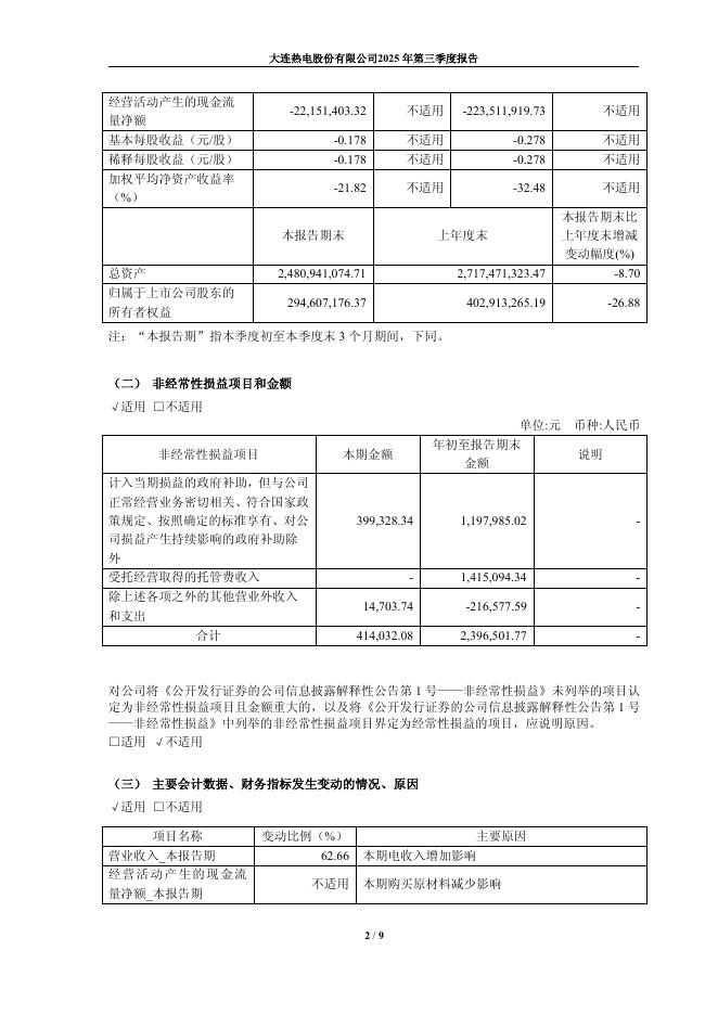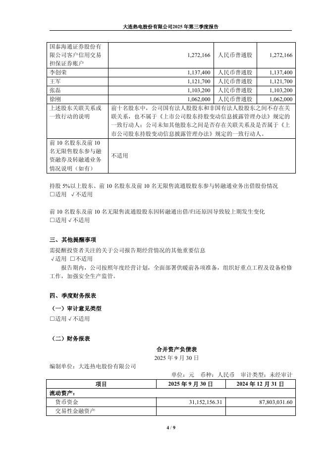 600719-大连热电:大连热电股份有限公司2025年第三季度报告.pdf
