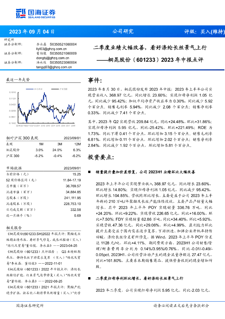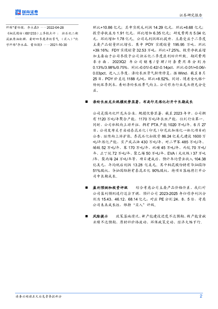 国海证券:桐昆股份(601233)-2023年中报点评:二季度业绩大幅改善,看好涤纶长丝景气上行.pdf