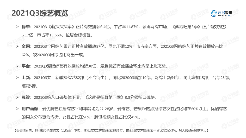 云合数据:2021Q3综艺网播表现及用户分析报告.pdf