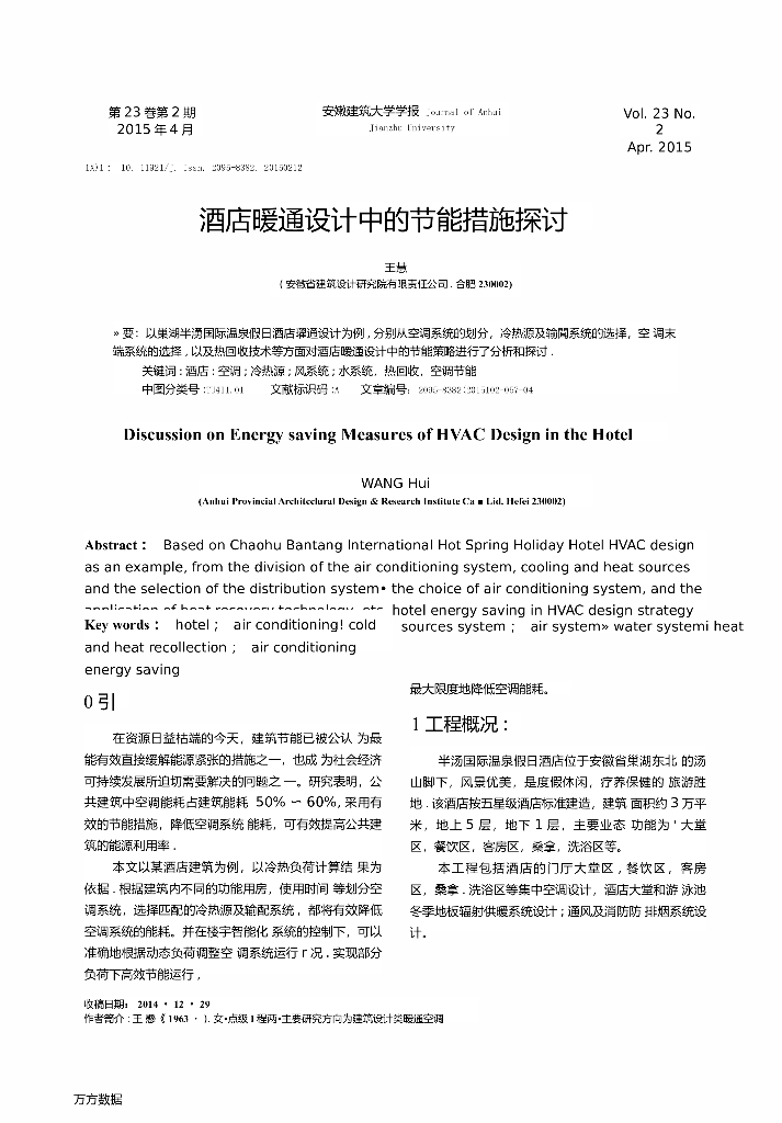 安徽省某国际温泉假日酒店暖通设计.ppt