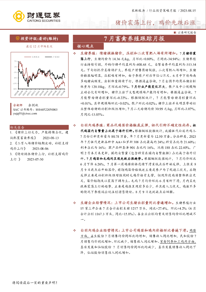财通证券:农林牧渔行业投资策略月报:7月畜禽养殖跟踪月报-猪价震荡上行,鸡价先跌后涨.pdf