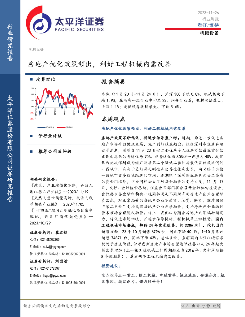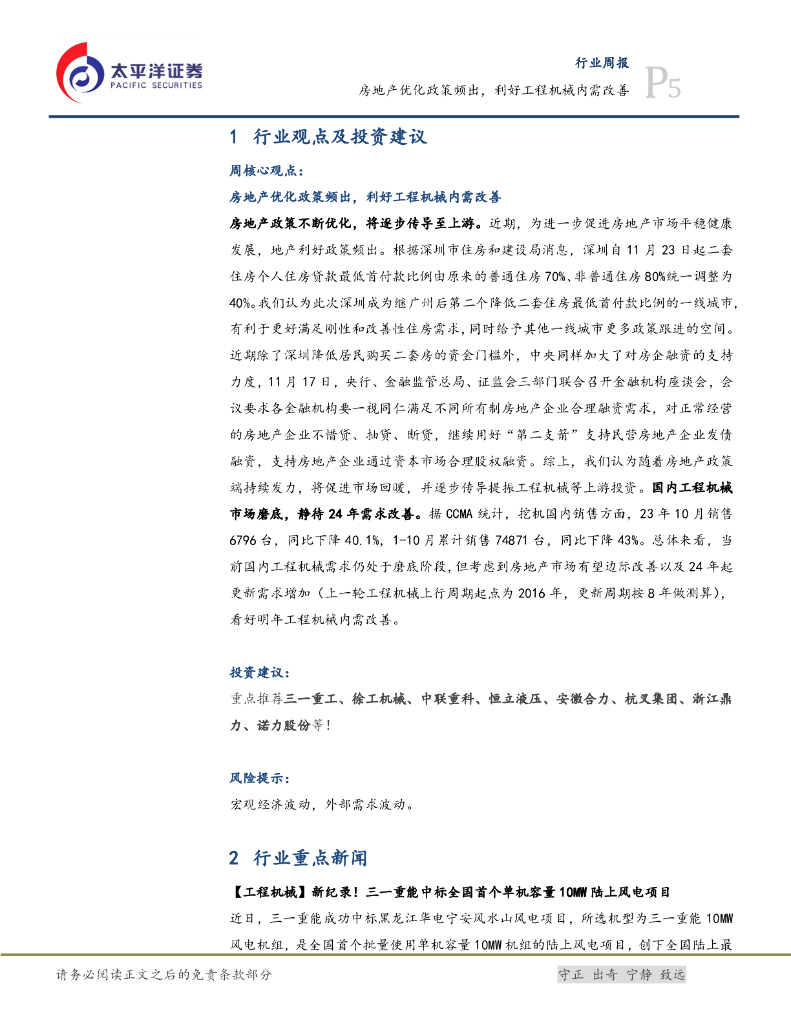 太平洋证券:机械设备行业周报:房地产优化政策频出,利好工程机械内需改善.pdf