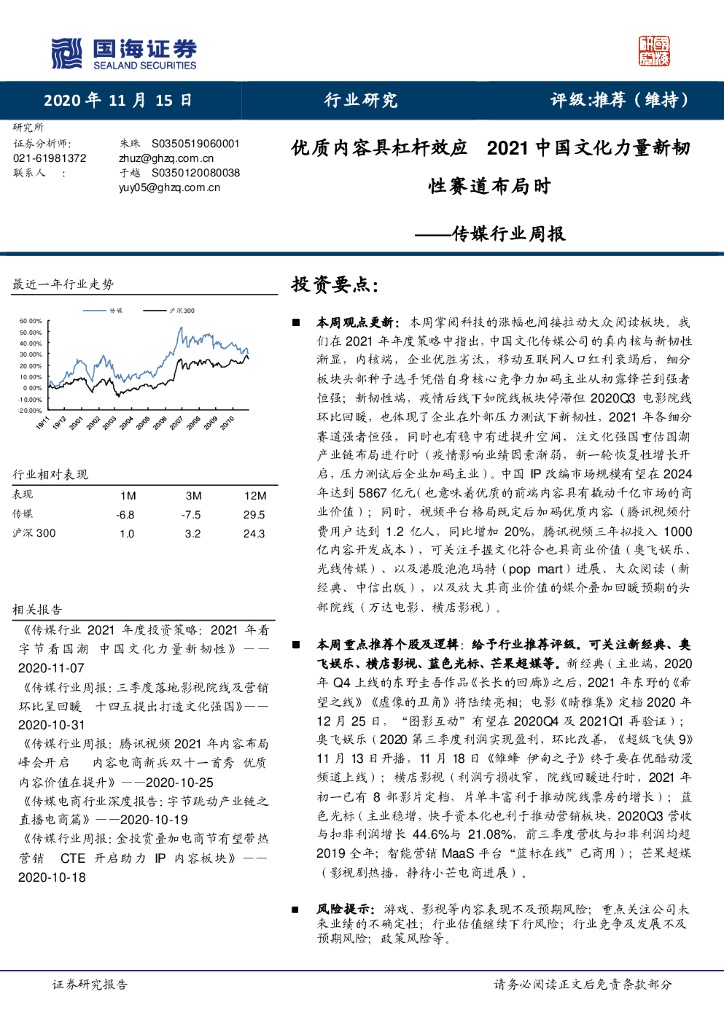 国海证券:传媒行业周报:优质内容具杠杆效应 2021中国文化力量新韧性赛道布局时.pdf