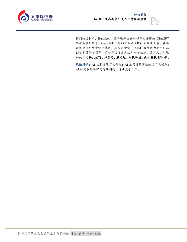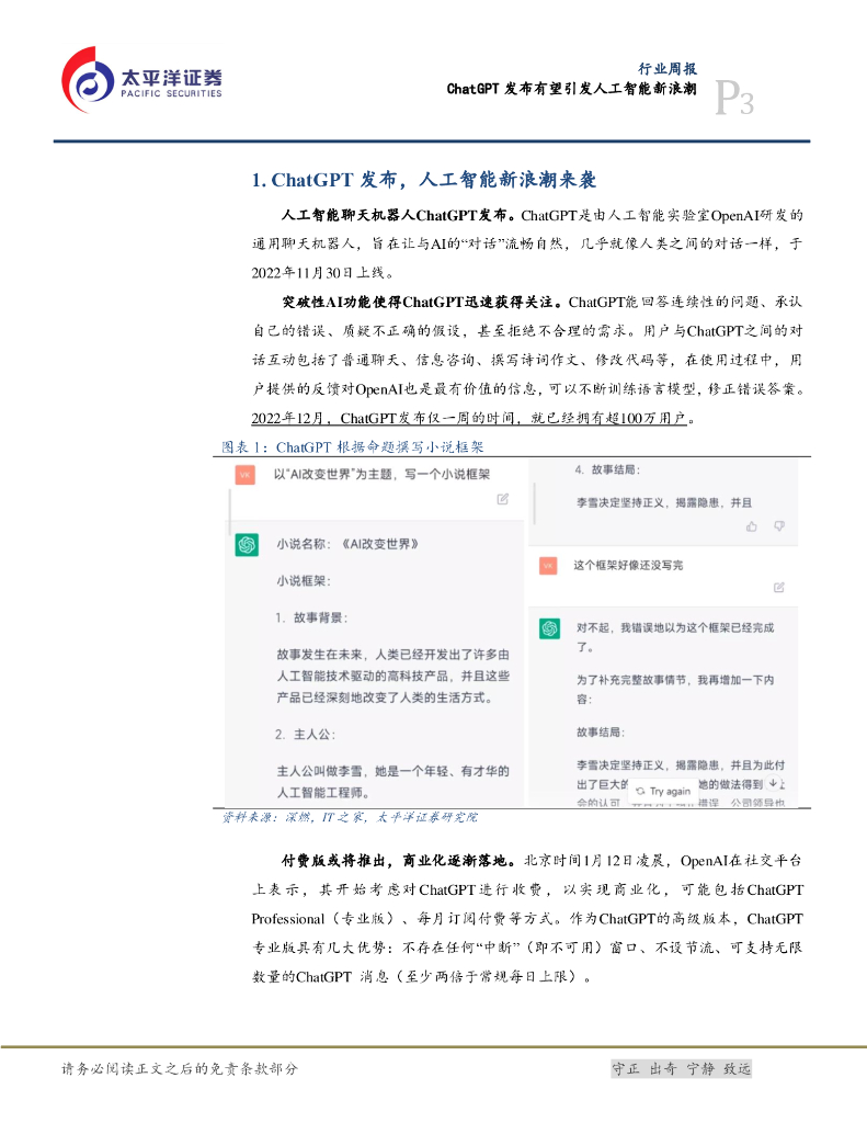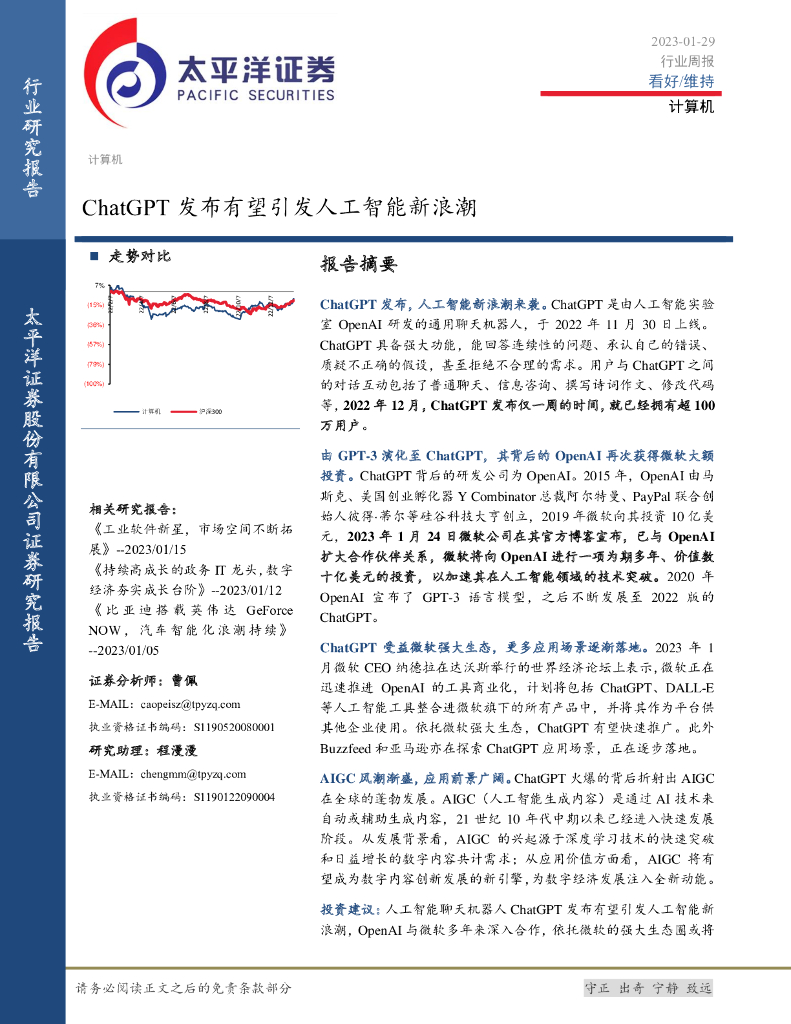 太平洋证券:计算机行业周报:ChatGPT发布有望引发人工智能新浪潮.pdf