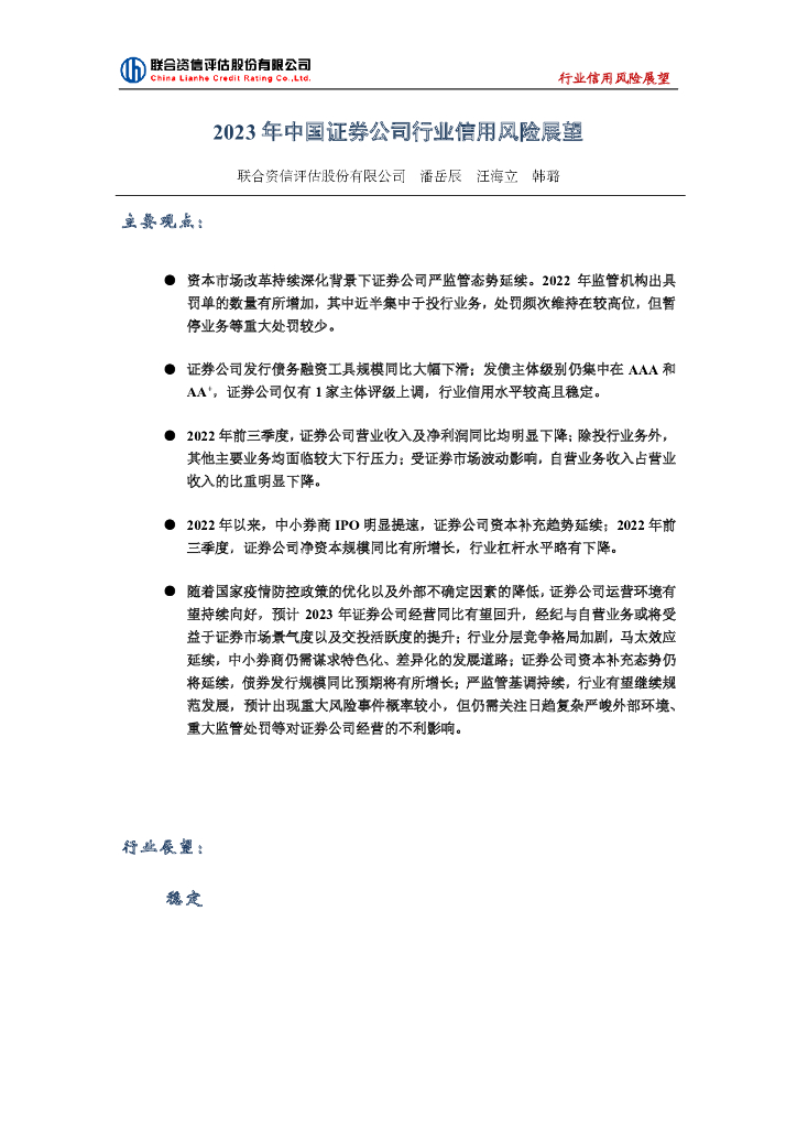 联合资信:2023年中国证券公司行业信用风险展望.pdf