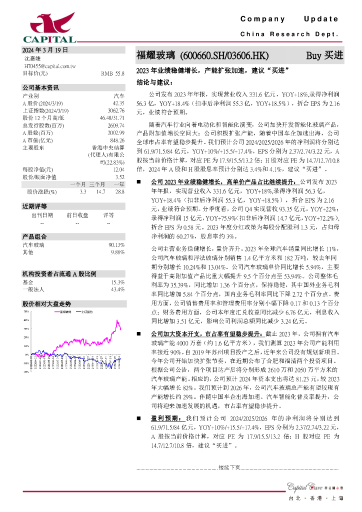 群益证券:福耀玻璃(600660)-2023年业绩稳健增长,产能扩张加速,建议“买进”.pdf