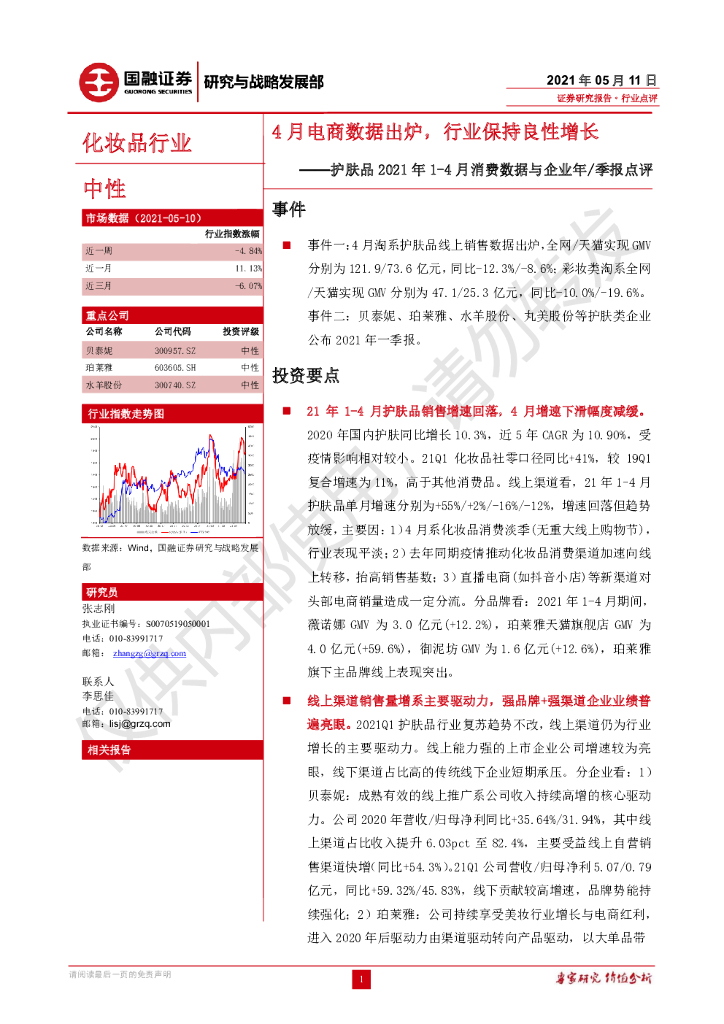 国融证券:护肤品2021年1-4月消费数据与企业年/季报点评:4月电商数据出炉,行业保持良性增长.pdf