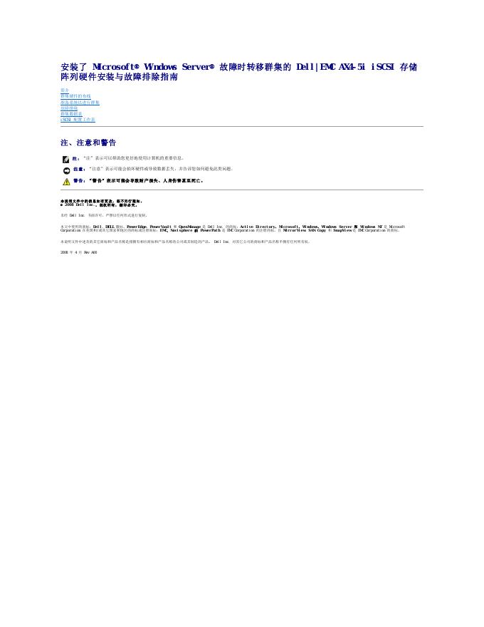 戴尔AX4-5i iSCSI存储阵列硬件安装与故障排除指南.pdf