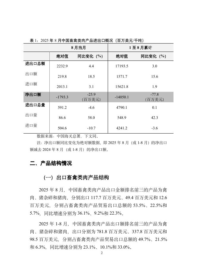对外经济贸易大学:中国畜禽类肉产品贸易月度监测报告(2025年1-8月).pdf