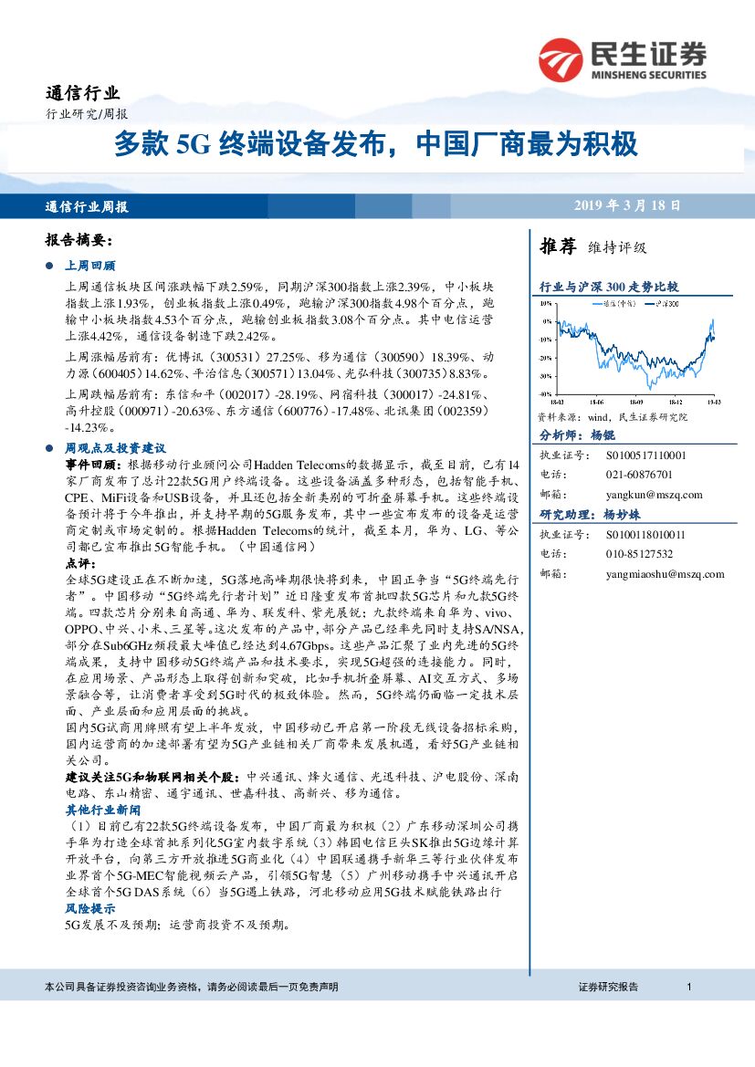 民生证券:通信行业周报:多款5G终端设备发布,中国厂商最为积极.pdf
