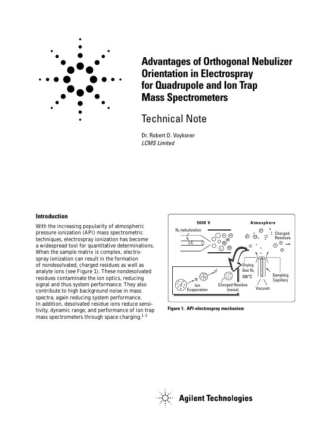 Agilent Technologies Advantages of Orthogonal Nebulizer Orientation in Electrospray for Quadrupole and Ion Trap Mass Spectrometers 技术手册(1).pdf