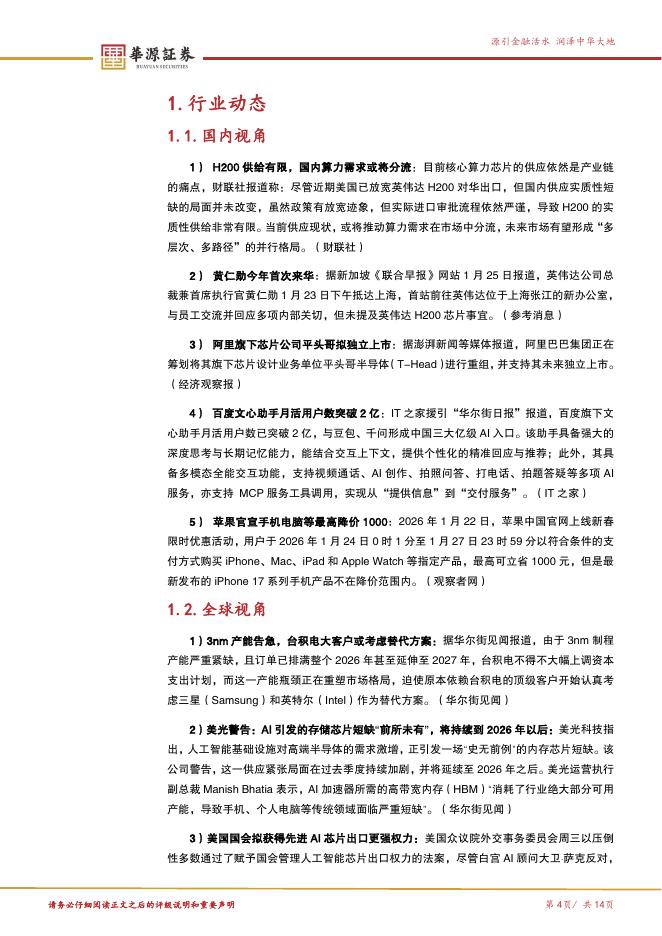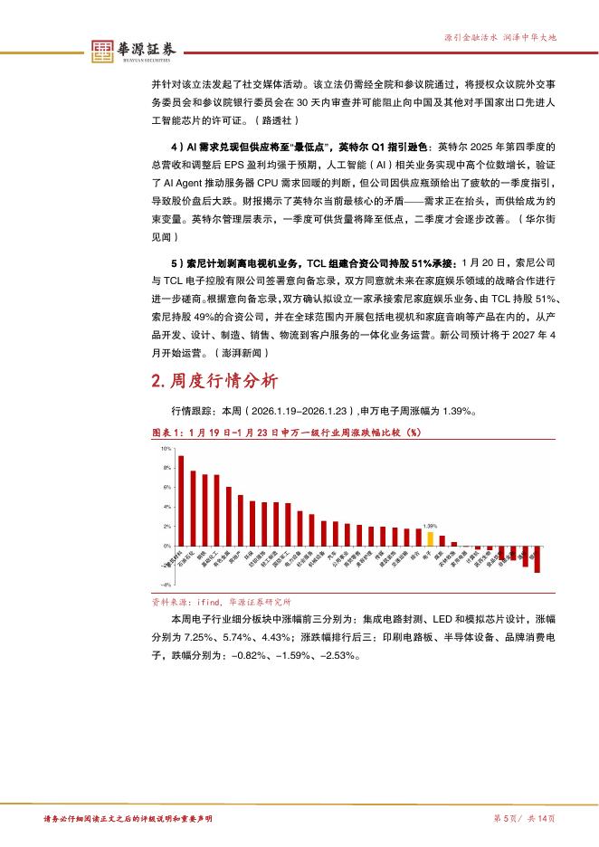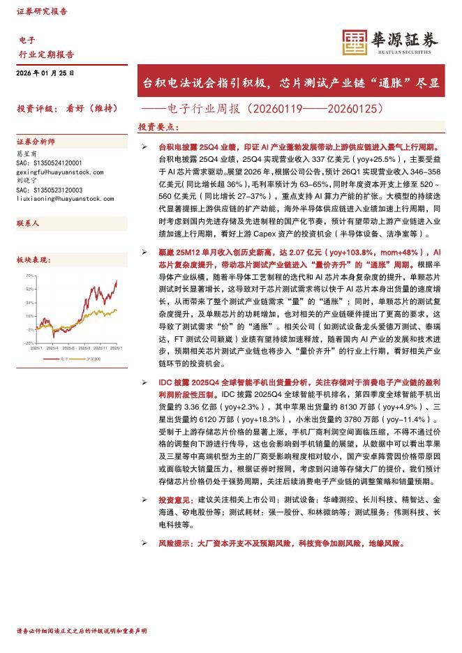 华源证券:电子行业周报(20260119——20260125):台积电法说会指引积极,芯片测试产业链“通胀”尽显.pdf