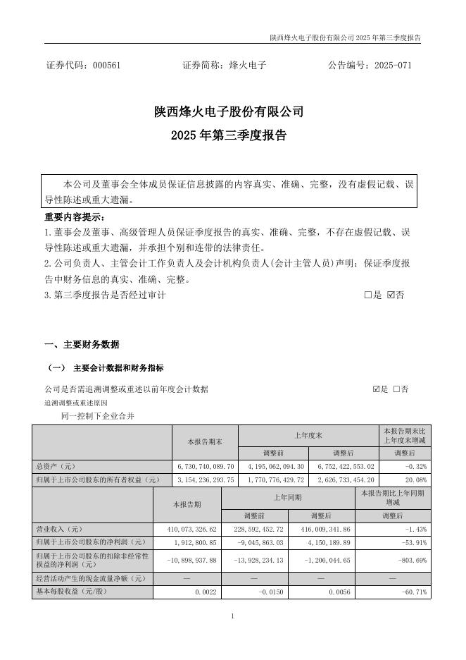 000561-烽火电子:2025年三季度报告.pdf