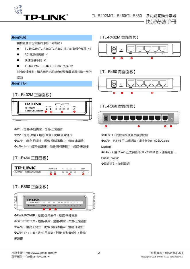 TP-LINK 家用多功能宽频分享器TL-R402M TL-R460/TL-R860 快速安裝手冊.pdf