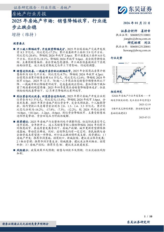 东吴证券:房地产行业月报:2025年房地产市场:销售降幅收窄,行业逐步止跌企稳.pdf