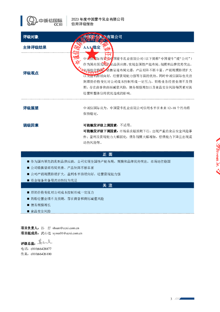 中诚信:2023年度中国蒙牛乳业有限公司信用评级报告.pdf