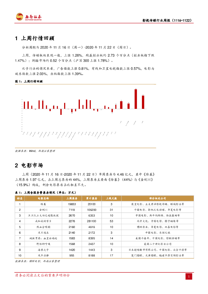 华龙证券:传媒行业点评报告:国庆档影视院线短期承压,关注行业后期回暖
