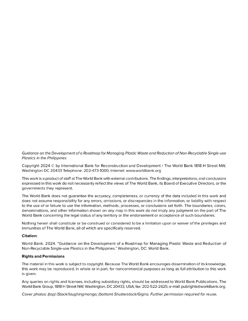 世界银行:2024关于制定菲律宾塑料废物管理和减少不可回收一次性塑料路线图的指导意见报告(英文版).pdf