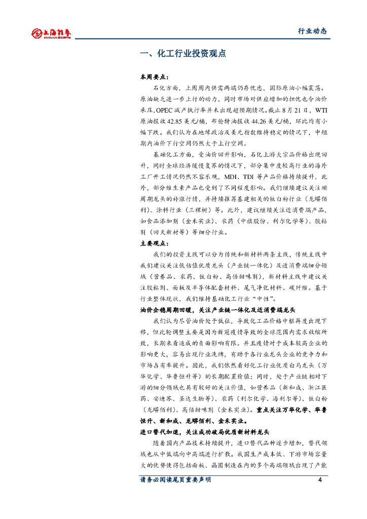 上海证券:化工行业周报:油价小幅下行,继续关注顺周期及近消费端细分领域.pdf