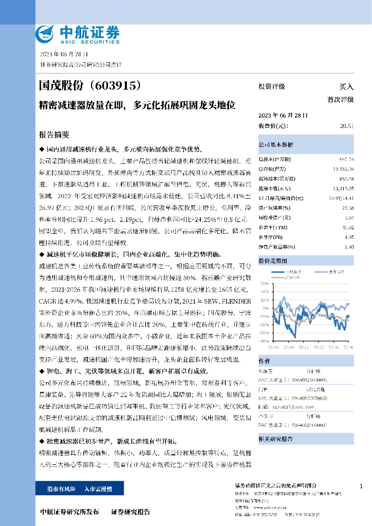 中航证券:国茂股份(603915)-精密减速器放量在即,多元化拓展巩固龙头地位.pdf