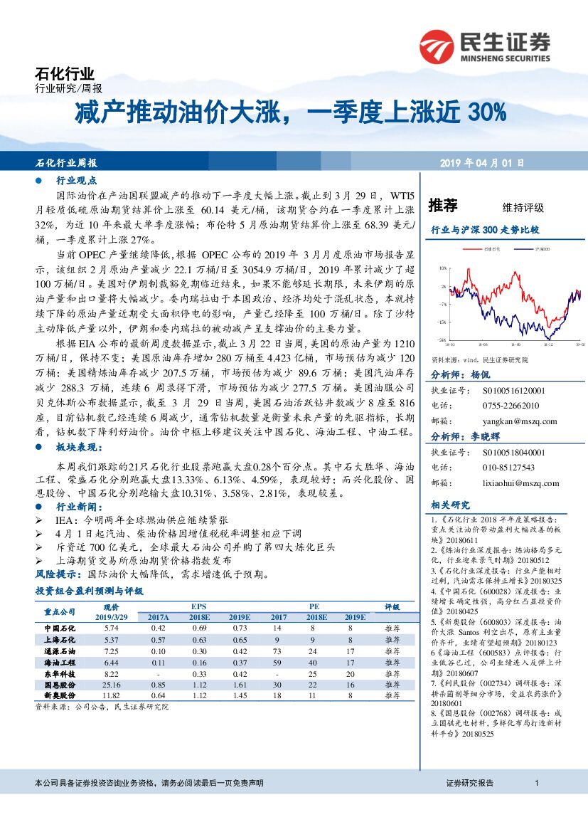 民生证券:石化行业周报:减产推动油价大涨,一季度上涨近30%.pdf