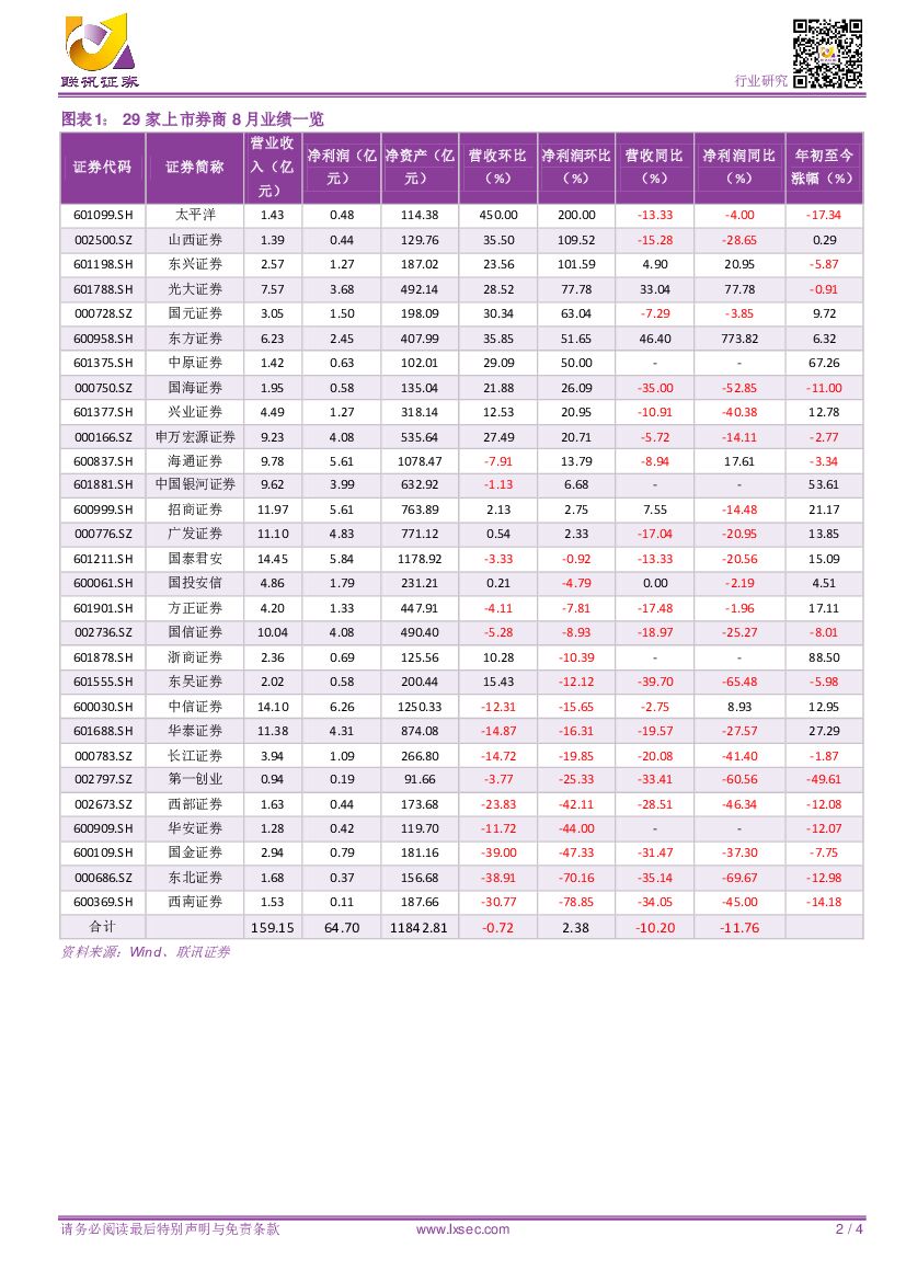 联讯证券:【联讯非银】券商8月业绩:环比微升,业绩企稳.pdf