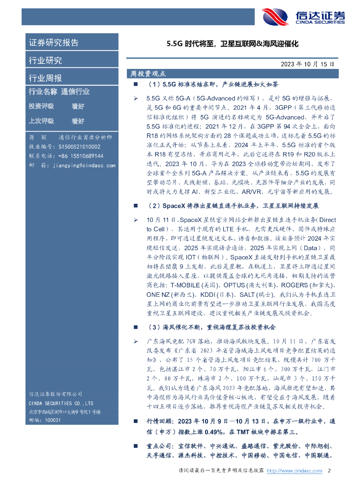信达证券:信达通信·产业追踪(97):5.5G时代将至,卫星互联网&海风迎催化.pdf