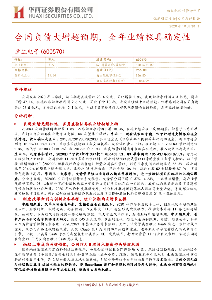 华西证券:恒生电子(600570)-合同负债大增超预期,全年业绩极具确定性.pdf