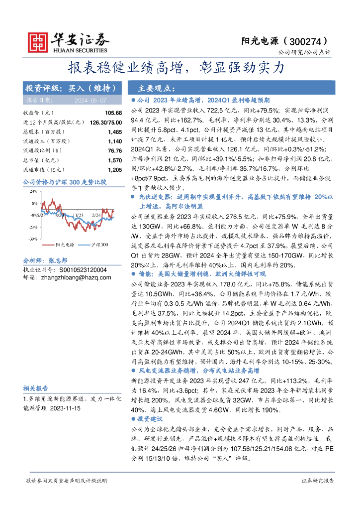 华安证券:阳光电源(300274)-报表稳健业绩高增,彰显强劲实力.pdf