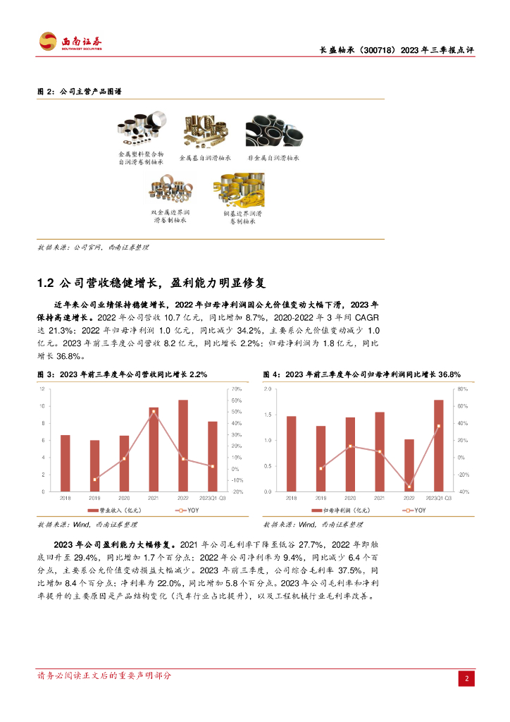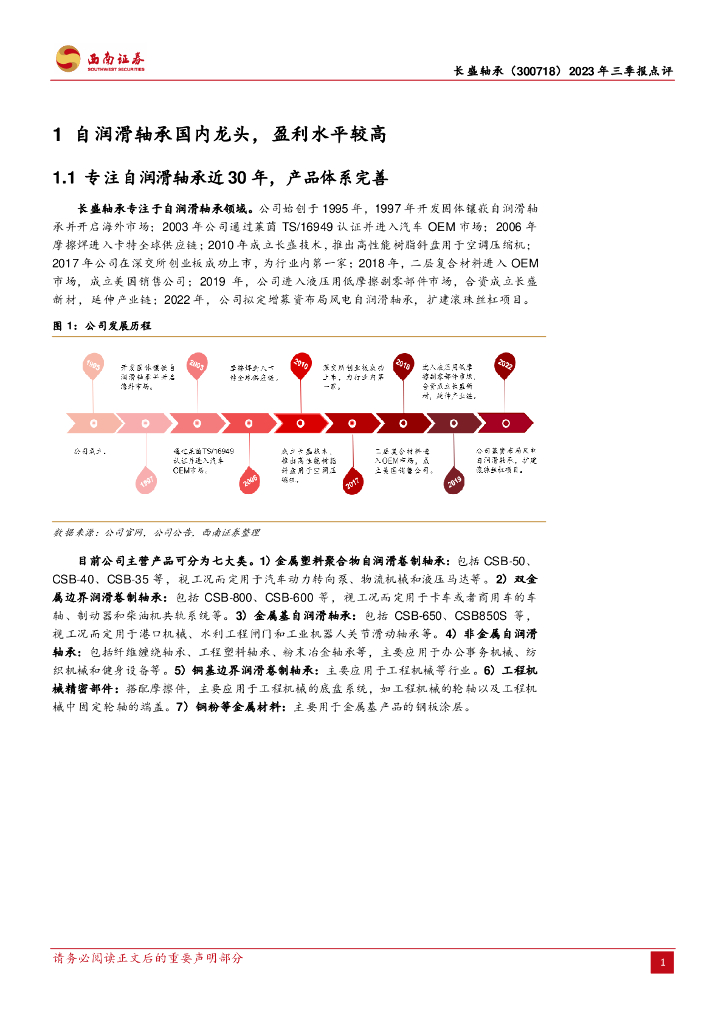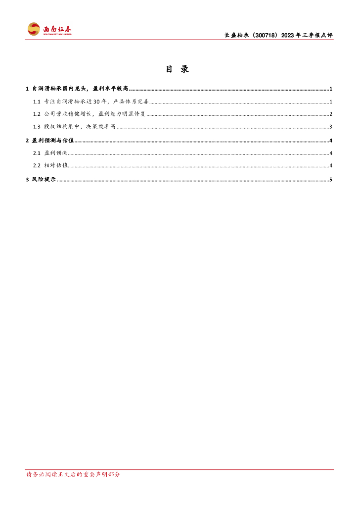 西南证券:长盛轴承(300718)-2023年三季报点评:国内自润滑轴承龙头,多领域应用打开成长空间.pdf