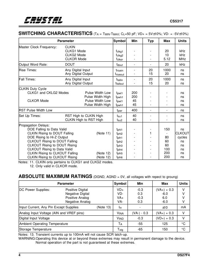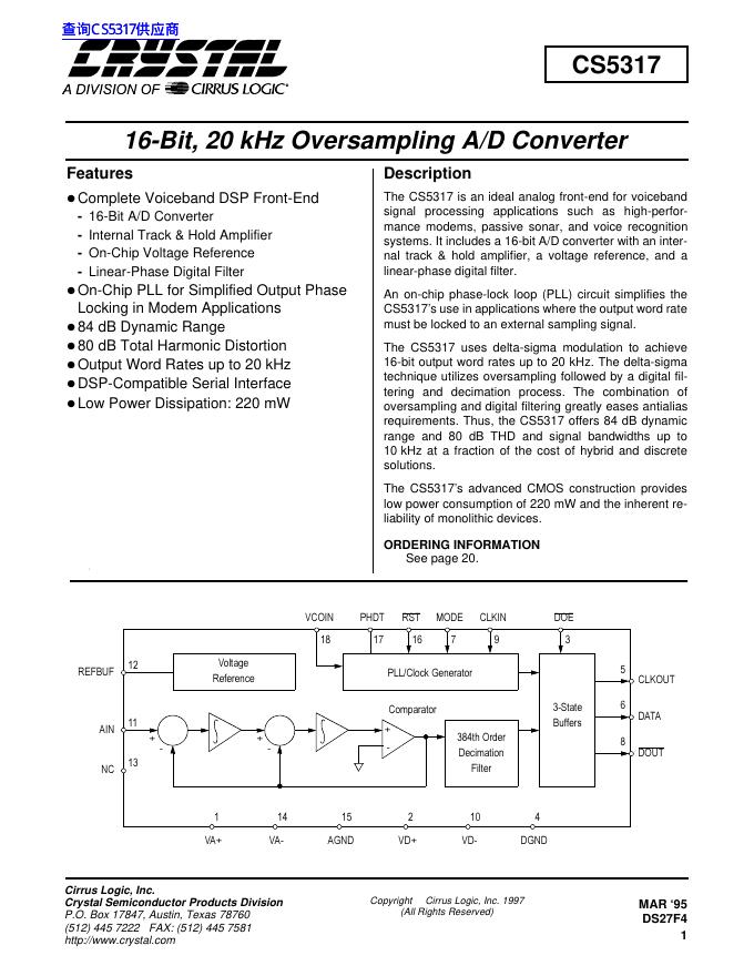 CRYSTAL CS5317 Oversampling A/D Converter 数据手册.pdf