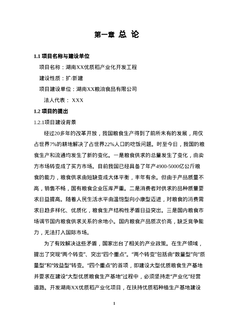 优质稻产业化开发工程可行性研究报告.doc