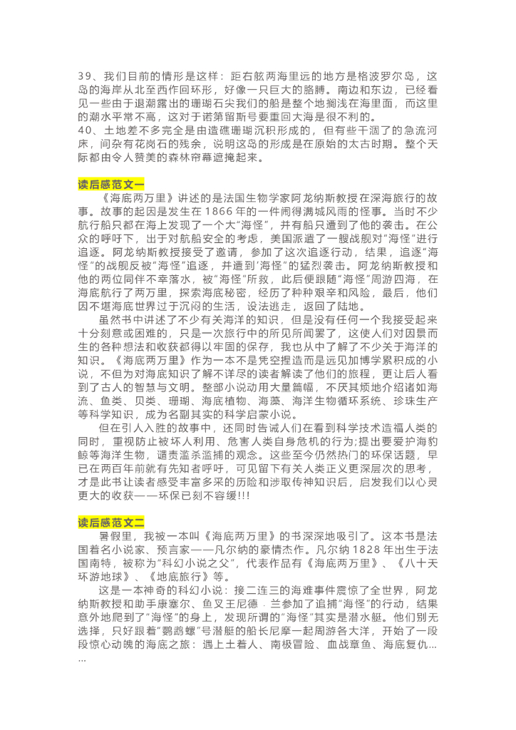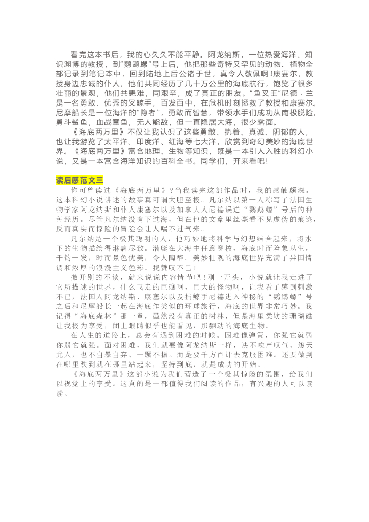 14《海底两万里》精彩片段+读后感.doc