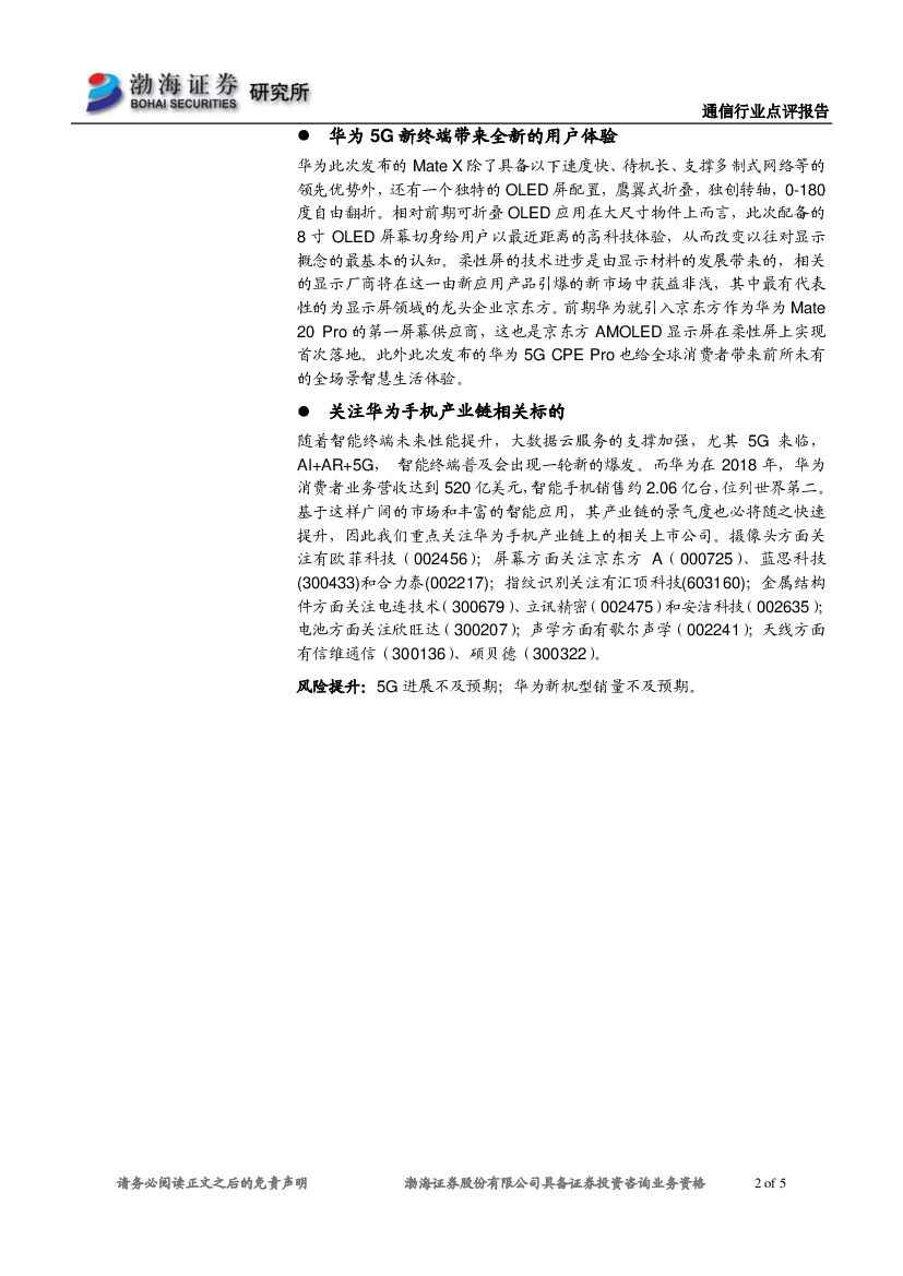 渤海证券:通信行业事件点评:华为5G智能终端发布,关注手机产业链标的.pdf