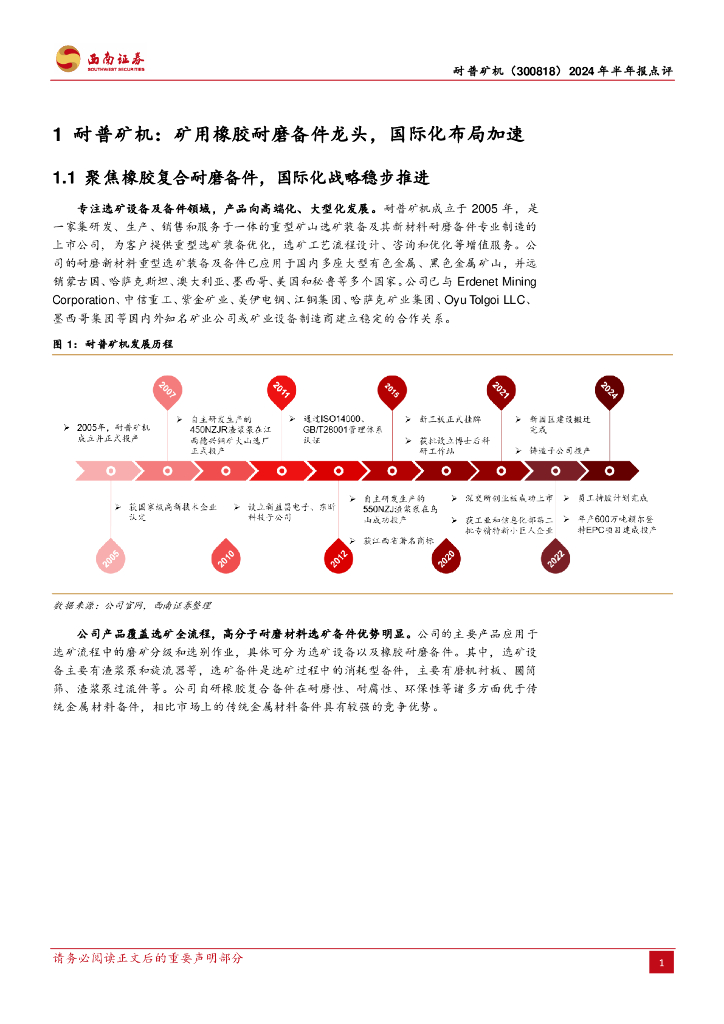 西南证券:耐普矿机(300818)-2024年半年报点评:矿用橡胶耐磨备件先行者,业绩实现高速增长.pdf