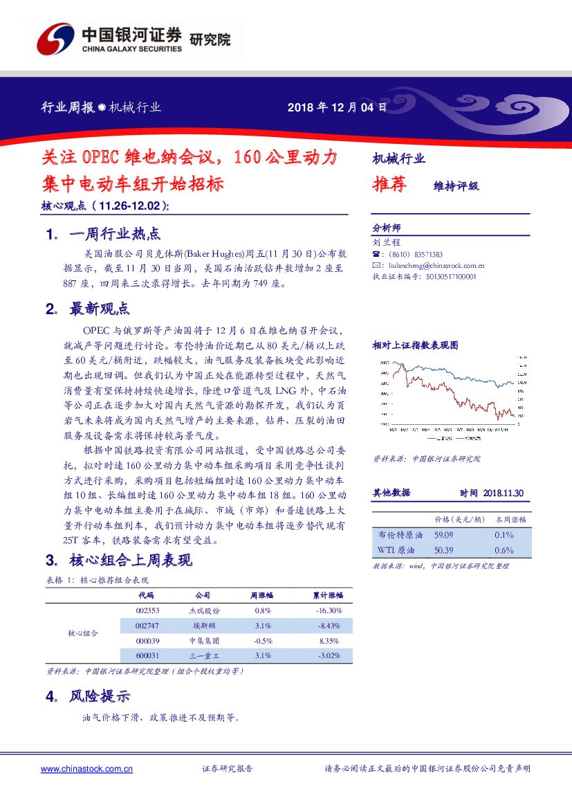 中国银河:机械行业周报:关注OPEC维也纳会议,160公里动力集中电动车组开始招标.pdf