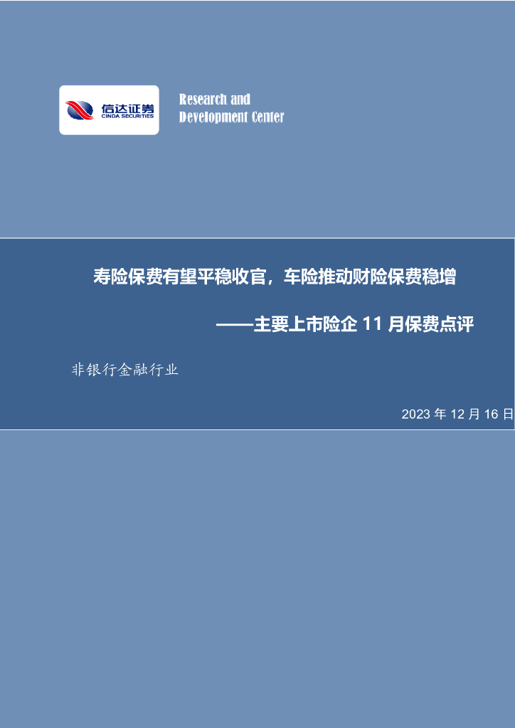 信达证券:主要上市险企11月保费点评:寿险保费有望平稳收官,车险推动财险保费稳增.pdf