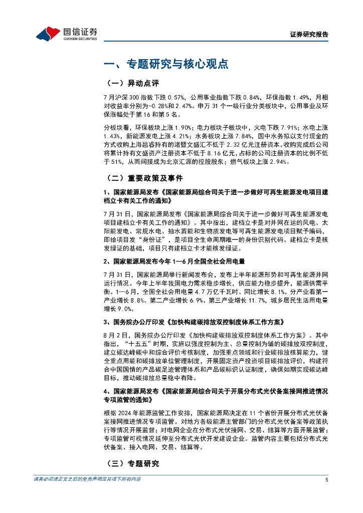 国信证券:公用环保2024年8月投资策略:碳排放双控制度体系加快建设,绿电绿证交易规模大幅增加.pdf