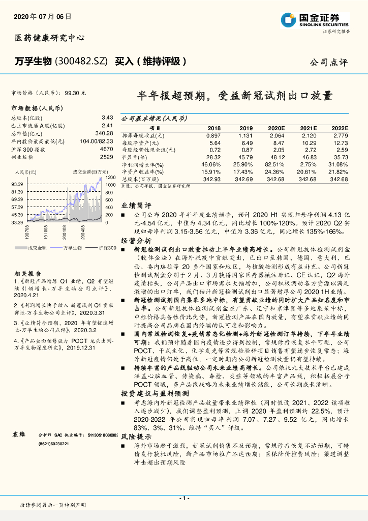 国金证券:万孚生物(300482)-半年报超预期,受益新冠试剂出口放量.pdf