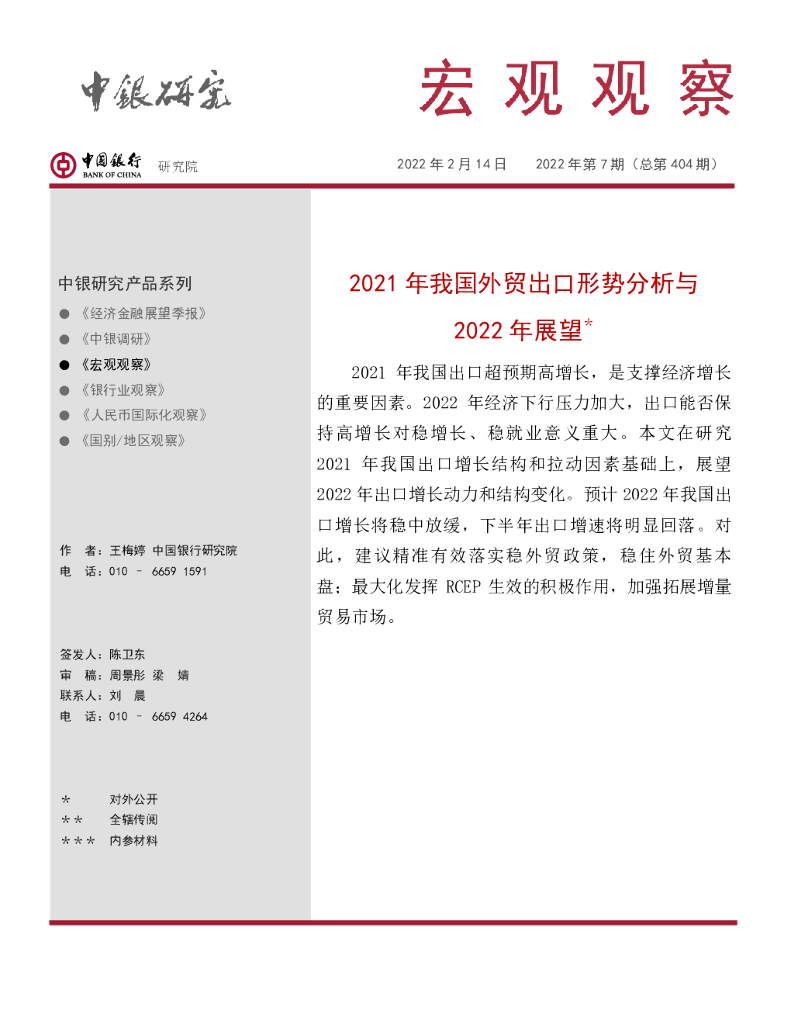 中国银行:宏观观察2022年第7期(总第404期):2021年我国外贸出口形势分析与2022年展望.pdf