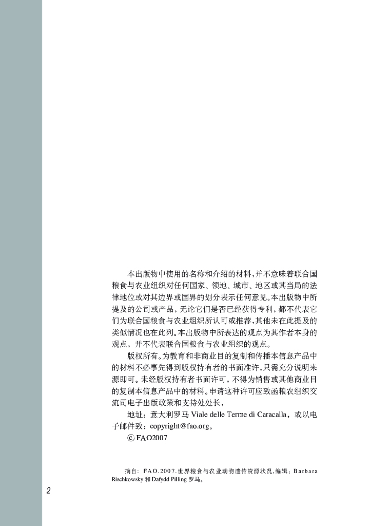FAO联合国粮农组织:2007世界粮食与农业动物遗传资源状况报告.pdf