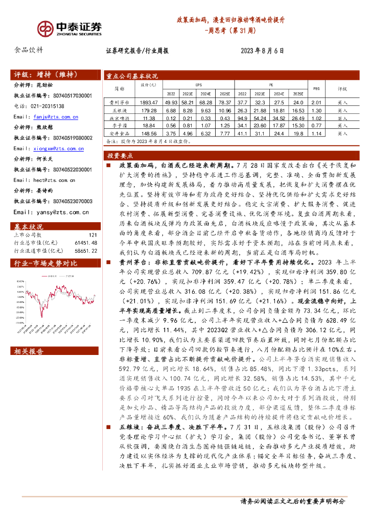 中泰证券:食品饮料周思考(第31周):政策面加码,澳麦回归推动啤酒吨价提升.pdf