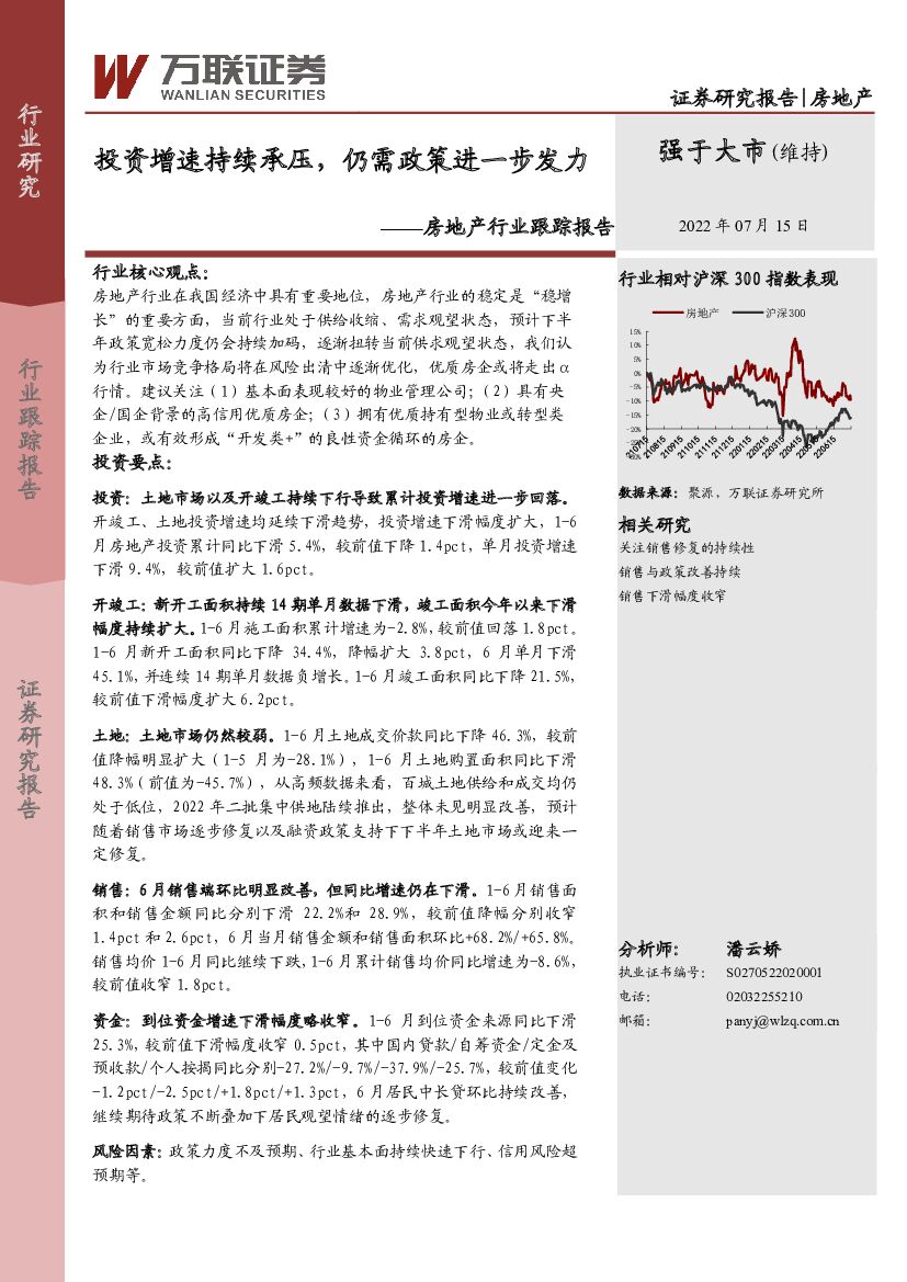 万联证券:房地产行业跟踪报告:投资增速持续承压,仍需政策进一步发力.pdf