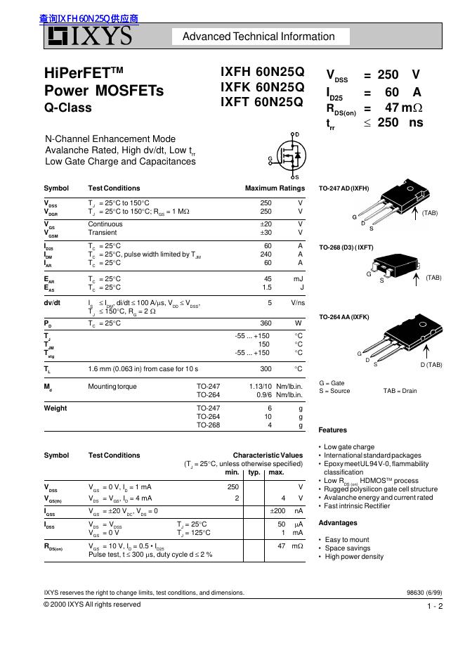 IXYS IXFH 60N25Q IXFK 60N25Q IXFT 60N25Q 数据手册.pdf