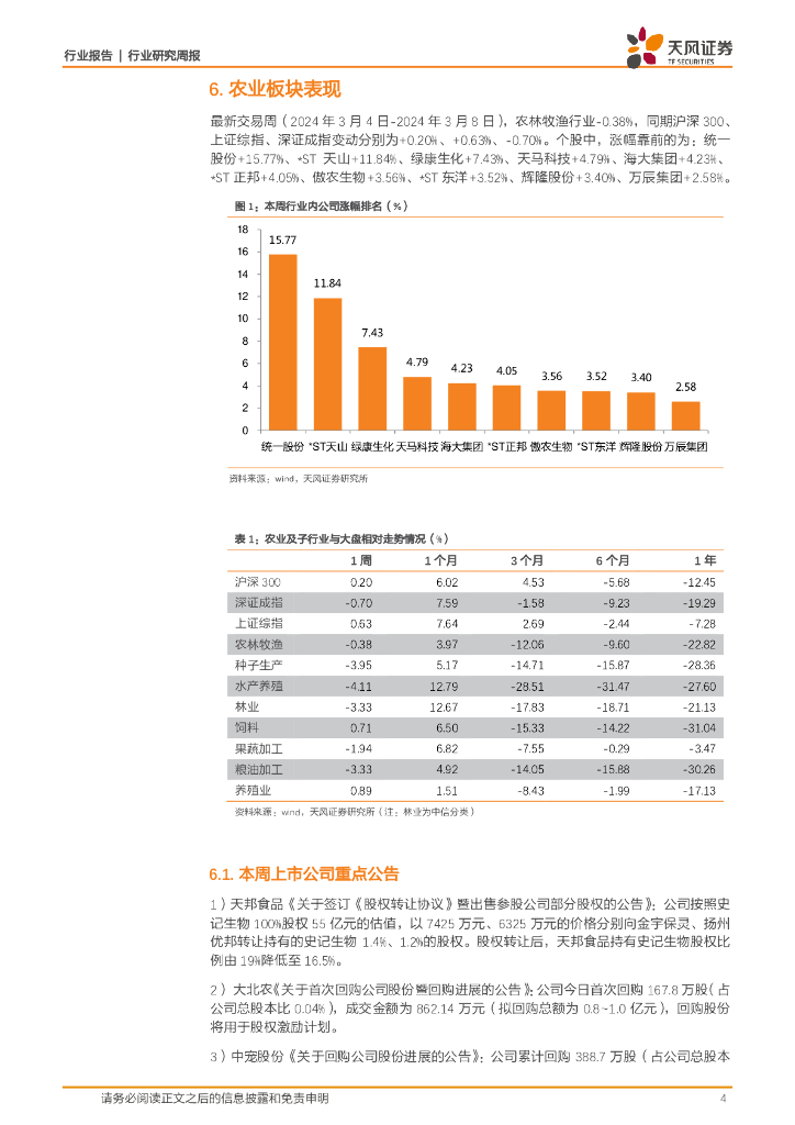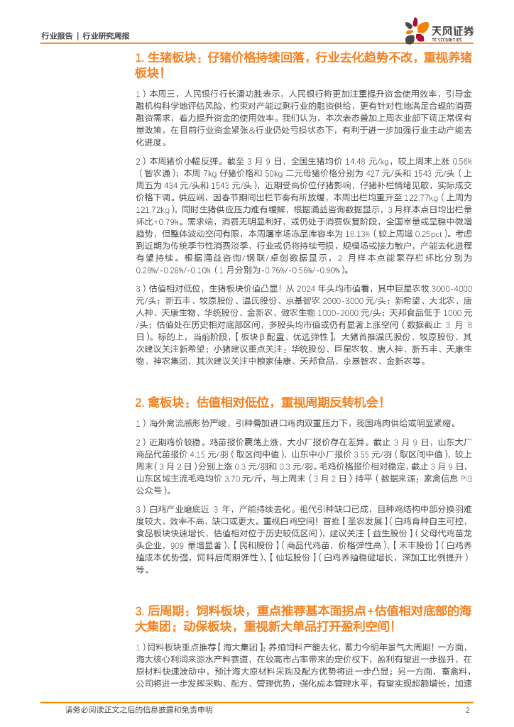 天风证券:农林牧渔行业2024年第9周周报:仔猪价格回落,行业主动产能去化有望加快,生猪板块价值凸显.pdf