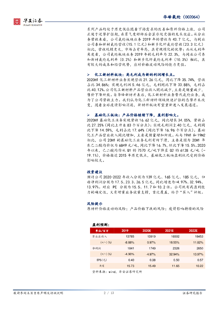 华安证券:华峰氨纶(002064)-氨纶业务优势稳定,新材料业务成主力.pdf