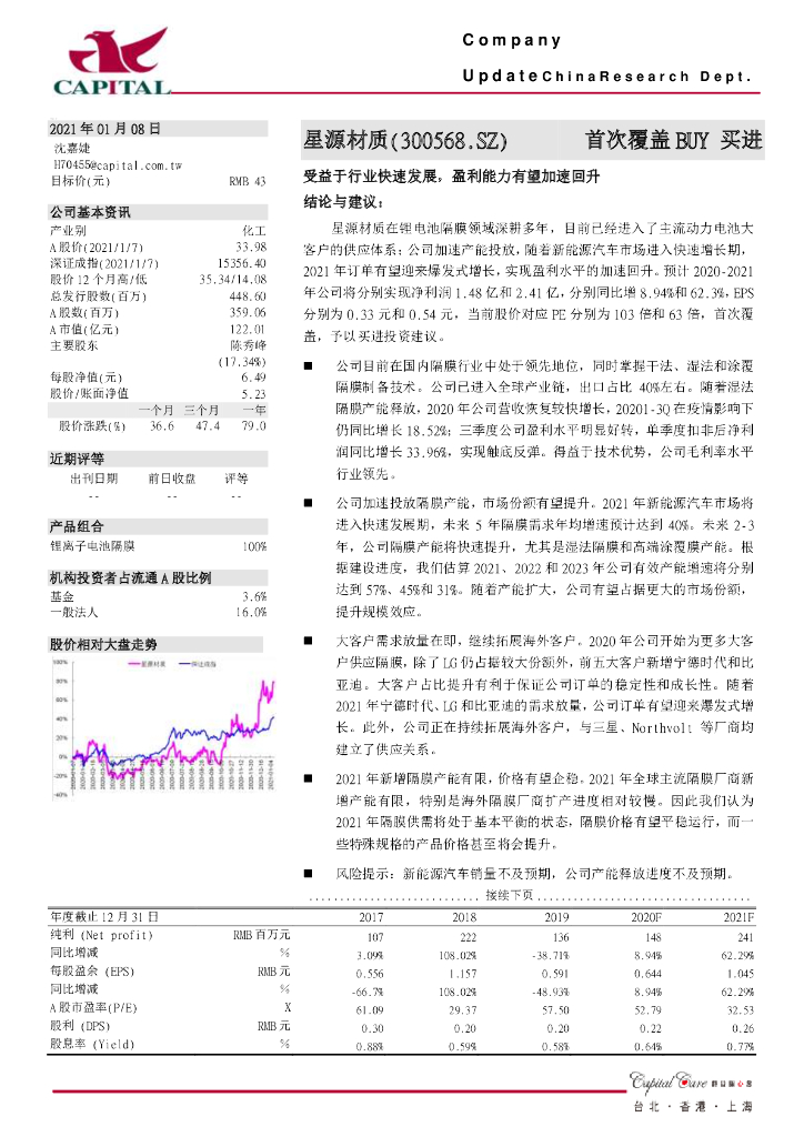 群益证券:星源材质(300568)-受益于行业快速发展,盈利能力有望加速回升.pdf