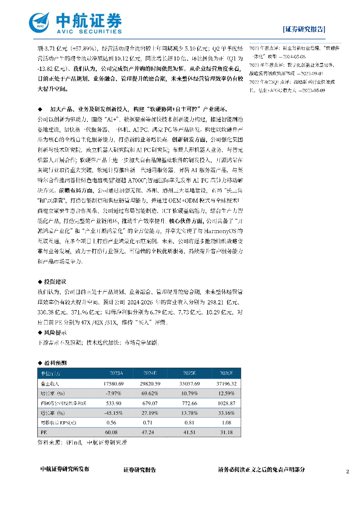 中航证券:软通动力(301236)-2024半年报点评:新业务架构完成首次亮相,构建“软硬协同+自主可控”产业闭环.pdf